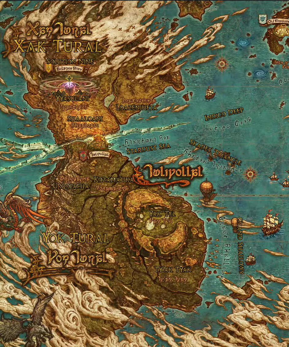 From the inspirations drawn for the Shetona language, and from the geographical parallels we can surmise with what we see and what we cannot in Tural, we can point to several different regions of North and South America. Given the size and breadth of Xak Tural, Tural as a whole, and what we hear in quests about Shetona not only coming from one place, we can pull inspiration for both what we can see and what we can't.